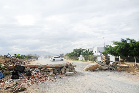 Đường số 4 đoạn qua Khu đô thị Hoàng Long rất mất mỹ quan. |