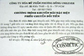 Thời gian qua, báo chí đã nhiều lần lên tiếng về các "chiêu" lừa đảo khuyến mãi, cụ thể là tặng hàng kém giá trị nhưng buộc bốc thăm trúng thưởng. Nếu người mua trúng (mà chắc chắn là trúng) thì được tặng quà (những món đồ rất rẻ) nhưng phải mua hàng với giá cắt cổ. Có lẽ cách làm ăn này không còn hiệu quả nữa nên các tay bịp bợm đã biến đổi chiêu thức mới mà người tiêu dùng rất dễ sập bẫy. Xin ví dụ một trường hợp sau: sản phẩm mà chúng mang ra dụ người tiêu dùng là hàng của Unilever (chẳng hạn như xà bông Omo, dầu gội đầu của chính hãng). Sau khi nhận hàng, chúng yêu cầu người mua mở ra để xem có trúng thưởng không? Bên trong sẽ có hai tờ giấy (Xem hình). Bên trên ghi là Công ty Hóa mỹ phẩm Phương Đông Unilever, có số điện thoại di động, địa chỉ ở TP. Hồ Chí Minh, có dấu đỏ nhưng không có chữ ký. Nội dung là Công ty Unilever tặng quà khuyến mãi là đồng hồ (của các hãng danh tiếng như ESSence, Rolex, Rado, Omega) cho khách hàng may mắn. Nếu nhận quà thì sau 3 ngày sẽ có người của công ty đến phỏng vấn và đổi tiền mặt cho gia đình và tặng thêm bộ nồi Inox trị giá 500.000 đồng. Lệ phí phải nộp là 270.000 đồng. Chiêu thức đơn giản nhưng đã đánh lừa rất nhiều người cả tin vì đã đánh trúng tâm lý của người tiêu dùng. Thứ nhất, chúng dùng hàng thật là các sản phẩm chính hãng để người mua tin tưởng, sau đó chúng tặng quà là đồng hồ của các hãng danh tiếng "làm mồi" làm người mua có tâm lý giá trị của các món hàng đó còn cao hơn số tiền mình bỏ ra, hơn nữa lại được tặng 500.000 đồng nên sụp bẫy, vì thực chất đồng hồ là đồ dỏm (chỉ có vỏ ngoài), còn bộ nồi Inox thì chẳng bao giờ được thấy vì chúng đã cao chạy xa bay. Mặt khác, nếu có ai nghi ngờ mà gọi vào số di động trên phiếu (gặp đồng bọn của chúng) thì càng thêm tin tưởng.