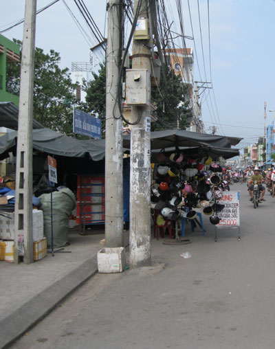 Trước cổng Trường Mầm non Phương Sơn (Nha Trang), người dân thường xuyên lấn chiếm, che dù, treo mũ bảo hiểm (xem ảnh) để buôn bán. Điều này làm mất mỹ quan đô thị và làm xấu cảnh quan trước cổng trường học. Đề nghị ngành chức năng thường xuyên nhắc nhở và xử lý nghiêm.