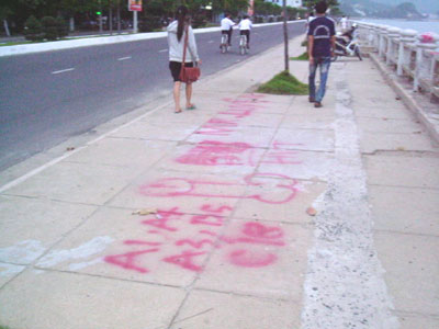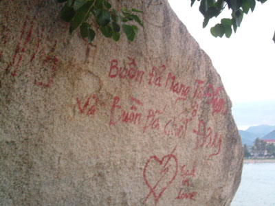 Thời gian qua, do cơ quan chức năng quan tâm xử lý nên tình trạng sơn vẽ, dán quảng cáo, rao vặt đã giảm bớt. Song, hiện nay, tình trạng này lại bắt đầu tái diễn. Nhiều người thiếu ý thức còn có “sáng kiến” sơn vẽ trên lề đường và các tảng đá (xem ảnh chụp tại Khu du lịch Hòn Chồng). Việc làm thiếu ý thức trên đã làm mất đi nét đẹp của thành phố biển du lịch Nha Trang.