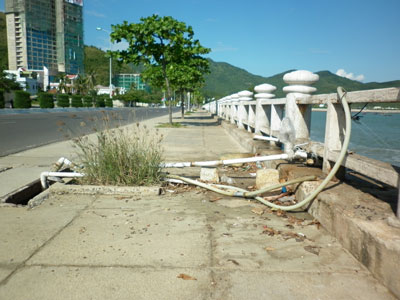 Hiện nay, tại đường Phạm Văn Đồng (phường Vĩnh Hòa, TP. Nha Trang) có một ống dẫn nước kéo dài, cao hơn nền đường khoảng 20cm (xem ảnh). Tình trạng này khiến người đi bộ, nhất là người dân đi tập thể dục buổi sáng thường bị vấp ngã. Đề nghị cơ quan chức năng khắc phục.
