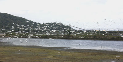 Gần đây, tại khu vực đồng muối dọc Quốc lộ 1A thuộc địa phận xã Cam Hải, phía Nam TP. Cam Ranh xuất hiện đàn cò trắng khoảng vài trăm con.