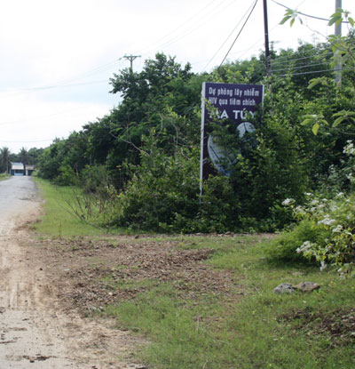 Tấm pa nô tuyên truyền phòng, chống HIV đặt trên tuyến đường từ Ninh Thủy đi Ninh Vân (thị xã Ninh Hòa, Khánh Hòa), đoạn bên hông Nhà máy Tàu biển Hyundai Vinashin gần đây đã bị cây cối ven đường che khuất (xem ảnh), không thể đọc được nội dung tuyên truyền.