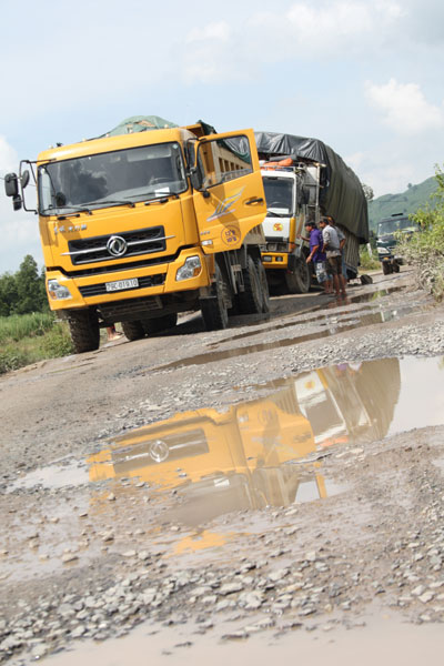 Những ngày qua, trên tuyến Tỉnh lộ 8, đoạn qua Nghĩa trang Gò Sạn (xã Diên Sơn, huyện Diên Khánh, Khánh Hòa) xuất hiện nhiều “ổ voi, ổ gà” (xem ảnh) khiến các ô tô chở hàng qua đây bị lún bánh, mắc kẹt rất lâu, phải nhờ xe khác đến kéo qua mới có thể tiếp tục đi được. Nhiều người đi xe máy cũng đã bị ngã khi lưu thông qua đây.