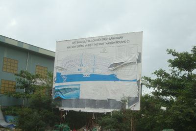 Hiện nay, ngay trước Viện Nghiên cứu chế tạo tàu thủy, xã Phước Đồng, TP. Nha Trang có tấm bảng thông tin về mặt bằng quy hoạch kiến trúc cảnh quan khu nghỉ dưỡng và biệt thự sinh thái Hòn Rớ (Khu C). Nhưng do lắp đặt lâu ngày nên đã bị rách một phần, phần còn lại nội dung cũng rất mờ (xem ảnh). Đề nghị đơn vị chủ quản thay mới hoặc gỡ bỏ.