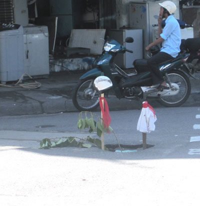Hiện nay, tại góc đường Trần Quý Cáp và Tô Vĩnh Diện xuất hiện một hố sâu đang tiếp tục sụt, lún. Đoạn đường này có rất đông người và phương tiện giao thông qua lại, hố sâu lại nằm ngay khúc cua nên rất nguy hiểm, người dân đã phải dùng cành cây, cây gỗ buộc vải đỏ để cảnh báo (xem ảnh).