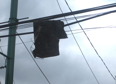 Trên đường 23-10 thuộc địa bàn xã Diên An (Diên Khánh, Khánh Hòa) có một khúc cây khá lớn đang nằm trên dây điện (xem ảnh). Theo một số người dân, trước kia tại đây có cây hoa sữa, tán cây bị dây điện quấn chặt vào. Khi cưa cây, vì không thể cắt dây điện nên người cưa đã chừa lại khúc cây này, và nó cứ lủng lẳng trên dây điện đến nay.