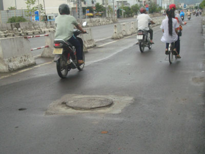 Hiện nay, dưới lòng Đại lộ Nguyễn Tất Thành, (chiều từ đường Lê Hồng Phong đến cầu Bình Tân, TP. Nha Trang), phần dành cho xe đạp, xe máy đã được đơn vị thi công lắp đặt hệ thống cống ngầm. Tuy nhiên, có đến 15 nắp cống bằng gang đều cao hơn mặt đường khoảng 2,5cm (xem ảnh). Để như thế này sẽ không an toàn giao thông. Đề nghị đơn vị chủ quản sớm khắc phục.