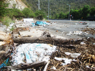 Bãi đậu xe trên Đại lộ Nguyễn Tất Thành (đoạn đi qua đèo Cù Hin, huyện Cam Lâm, Khánh Hòa) đang trở thành một bãi rác thải (xem ảnh), gây ô nhiễm môi trường và làm mất cảnh đẹp của đại lộ.