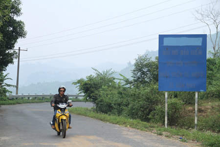 Hiện nay, trên Tỉnh lộ 9 đoạn trước điểm trường đỉnh đèo (thuộc thôn Dốc Trầu, xã Ba Cụm Bắc, huyện Khánh Sơn) có bảng tuyên truyền về đội mũ bảo hiểm đối với người ngồi trên xe mô tô, xe gắn máy, nhưng chữ đã bị mờ, rất khó đọc (ảnh).