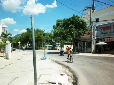 Hiện nay, trụ gắn biển tên đường ở ngã ba đường Nguyễn Thị Minh Khai - Đại lộ Hùng Vương (TP. Cam Ranh) chỉ còn lại trụ (ảnh), gây khó khăn cho người tham gia giao thông.