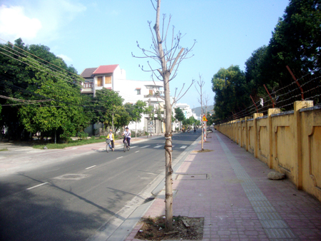 Đường Nguyễn Lộ Trạch, TP. Nha Trang được làm mới từ mấy năm nay, hai hàng cây trồng hai bên đường đã lên xanh tốt.