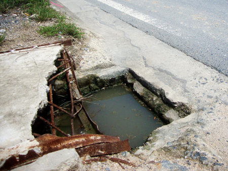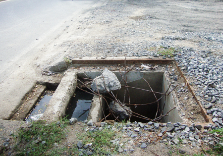Hiện nay, trên lề Đại lộ Nguyễn Tất Thành đoạn qua thôn Phước Lộc và thôn Phước Trung, xã Phước Đồng, TP. Nha Trang có 2 hố ga nằm sát lòng đường bị vỡ nắp, lộ ra phần cốt sắt nguy hiểm (xem ảnh 1, 2).