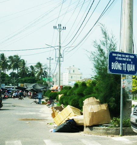 Hiện nay, tại dải phân cách ngã ba đường Lê Hồng Phong và đường vào chợ Vạn Ninh, thị trấn Vạn Giã người dân tập kết rác (ảnh) làm hư hại cây xanh, cản trở giao thông và mất mỹ quan đường phố.
