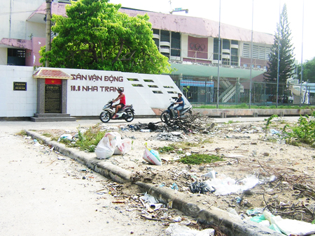 Trước cổng chính vào Sân vận động 19/8 Nha Trang có một phần đất trống khá rộng. Ngày nào sân vận động diễn ra các trận đấu thì khu đất này được trưng dụng để giữ xe. Do không ai chăm sóc nên cây dại mọc và là chỗ để người dân vứt rác. Thiết nghĩ, ngành chức năng nên sớm khắc phục để tạo mỹ quan trước cổng sân vận động.