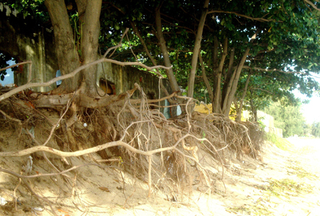 Hiện nay, hàng cây bàng trên bãi biển Nha Trang (tiếp giáp với quân cảng) bị trơ gốc rễ do triều cường, sóng lớn cuốn đất, cát ở gốc (ảnh). Nếu không có biện pháp thì hàng cây đang tạo mỹ quan, cho bóng mát này sẽ bị bật gốc. Rất mong đơn vị chủ quản quan tâm giữ gìn hàng cây này.