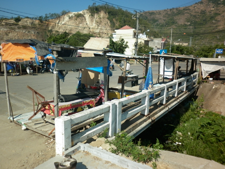 Cây cầu nối đường Lý Thái Tổ (phường Vĩnh Hòa, TP. Nha Trang) có hành lang rộng gần 3m dành cho người đi bộ. Thế nhưng, người dân lại ngang nhiên dựng nhà tạm để buôn bán bịt kín lối đi (ảnh). Chính quyền địa phương cần chấn chỉnh và xử lý.