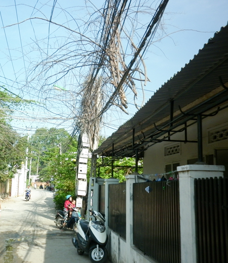 Trước nhà 89A, hẻm Nguyễn Khuyến, Tây Nam, phường Vĩnh Hải, TP. Nha Trang có nhiều cành cây khô nằm đè lên dây điện (ảnh), làm ảnh hưởng đến an toàn điện.