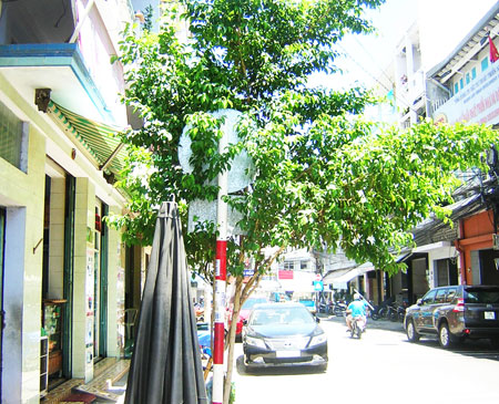 Hiện nay, có một bảng hướng dẫn giao thông trên đường Tô Vĩnh Diện, TP. Nha Trang bị tán lá cây che phủ kín (ảnh). Rất mong ngành chức năng sớm khắc phục.