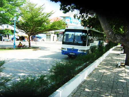 Tại công viên phía bắc đầu cầu Trần Phú, TP. Nha Trang thường xuyên bị các xe khách đến đây đậu đỗ (ảnh). Điều này khiến cho nền gạch của công viên bị hư hỏng. Rất mong ngành chức năng chấn chỉnh tình trạng này.