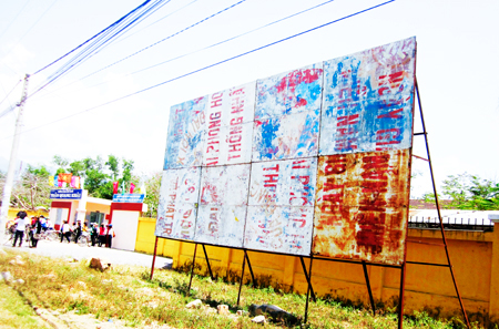 Báo Khánh Hòa thứ Tư, ngày 31-8 phản ánh bảng tuyên truyền bên cạnh cổng Trường THCS Trần Quang Khải (xã Diên Điền, huyện Diên Khánh) không tác dụng.
