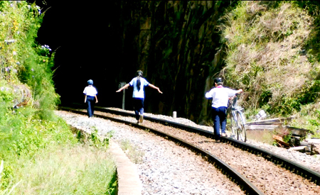 Trong đợt mưa lũ vừa qua, cầu gỗ Phú Kiểng bắc qua sông Cái Nha Trang bị lũ cuốn trôi, gây gián đoạn việc đi lại của người dân các xã, phường phía bắc TP. Nha Trang. Do đó, để đến được Trường THCS Cao Thắng (thuộc xã Vĩnh Ngọc) nằm bên kia sông, học sinh đã phải chui qua hầm đường sắt ....