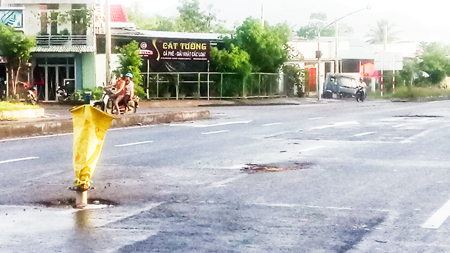 Hiện nay, tại Quốc lộ 1 đoạn ngã ba đường tránh thị trấn Diên Khánh (thuộc địa bàn thôn Phú Hậu, xã Suối Hiệp, Khánh Hòa) xuất hiện hàng loạt ổ “gà” nối tiếp nhau (ảnh). Chứng kiến nhiều vụ tai nạn giao thông xảy ra tại khu vực này, người dân đã cắm chướng ngại vật nhằm cảnh báo cho người đi đường. Đã vậy, vào ban đêm, đoạn đường này lại không có điện. Đề nghị các ngành chức năng sớm kiểm tra, khắc phục.