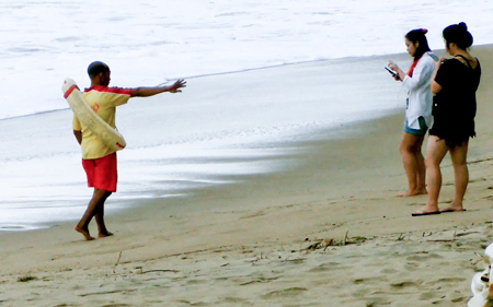 Từ ngày 29-12, biển động rất mạnh trên bãi biển Nha Trang. UBND TP. Nha Trang đã điều động lực lượng cứu hộ, cứu nạn đứng dọc theo bãi biển kiên quyết ngăn cản không cho người dân và du khách xuống tắm biển (ảnh), cũng như chụp ảnh để đảm bảo an toàn.