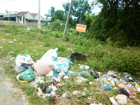 Trên Quốc lộ 1 đoạn qua xã Ninh Thọ, thị xã Ninh Hòa có dựng biển cấm đổ rác. Thế nhưng, người dân vẫn thiếu ý thức đổ rác tràn lan nơi biển cấm (ảnh).