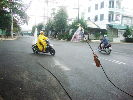 Mấy ngày nay, tại ngã tư đường Lý Nam Đế - Bửu Đóa, phường Phước Long, TP. Nha Trang có dây viễn thông từ trên cao thòng xuống mặt đường, gây nguy hiểm cho người tham gia giao thông, người dân phải lấy bao bì buộc vào dây để cảnh báo (ảnh). Rất mong cơ quan chức năng khẩn trương khắc phục để đảm bảo an toàn và mỹ quan đường phố.