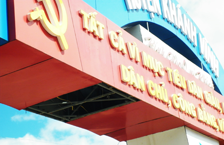 Cổng chào nằm trên đường 2-8 nơi ngõ ra vào thị trấn Khánh Vĩnh, huyện Khánh Vĩnh (Khánh Hòa) được xây dựng, thiết kế rất đẹp. Song, hiện nay, có tấm la phông phía dưới cổng chào bị rơi rớt (ảnh). Mong chính quyền địa phương sớm chỉnh trang lại.