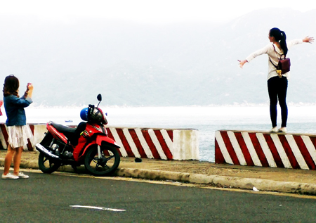 Trong dịp Tết Đinh Dậu, trên tuyến đường biển Phạm Văn Đồng, TP. Nha Trang, đoạn đi qua khu thắng cảnh Bãi Tiên, nhiều thanh niên dừng xe tại đây để chụp ảnh. Điều đáng nói, có người đã bất chấp nguy hiểm, đứng lên lan can để chụp ảnh (ảnh) trong khi bên dưới là vách thẳng đứng cách mặt biển gần 300m. Thiết nghĩ, ngành chức năng nên có biển cảnh báo nguy hiểm, phòng tránh tai nạn có thể xảy ra.