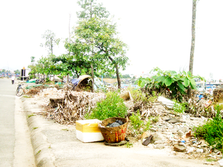Hiện nay, đoạn đường từ ngã ba Nguyễn Văn Linh - Nguyễn Hữu Thọ đến ngã ba Nguyễn Văn Linh - Lê Như Hổ (TP. Nha Trang) bị người dân đổ đầy xà bần, cỏ mọc um tùm, trông nhếch nhác (ảnh).