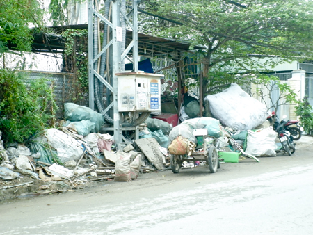 Hiện nay, dưới hộp điện biến áp tại trạm T. 86B Nguyễn Khuyến, phường Vĩnh Hải, TP. Nha Trang có hộ kinh doanh để phế liệu chồng chất (ảnh), gây mất an toàn điện và nguy cơ xảy ra cháy nổ.