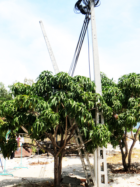 Hiện nay, tại trước nhà của một hộ dân, đối diện với điểm giao dịch Ngân hàng Chính sách xã hội, thôn Thủy Triều (xã Cam Hải Đông, huyện Cam Lâm) có một trụ viễn thông nghiêng về phía sân nhà họ và có thể ngã xuống bất cứ lúc nào (ảnh).