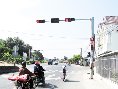 Hiện nay, vạch dừng xe của đèn tín hiệu giao thông chiều Nha Trang - TP. Hồ Chí Minh tại điểm giao nhau trên Quốc lộ 1 và đường đi Suối Cát - Suối Tiên (huyện Cam Lâm) rất bất hợp lý. Vạch dừng xe nằm sau đèn tín hiệu; nếu xe dừng ngay vạch sẽ không quan sát được đèn (ảnh). Đề nghị đơn vị quản lý giao thông khu vực này nên kẻ lại vạch cho phù hợp.