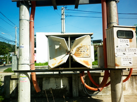 Hiện nay, nắp đậy biến áp tại trạm T.140 trên đường Tôn Đức Thắng, xã Phước Đồng, TP. Nha Trang bị kẻ xấu làm hư hỏng nặng, toàn bộ nắp đậy đã bị bẻ cong (ảnh), không còn tác dụng bảo vệ thiết bị bên trong và gây nguy hiểm, mất an toàn điện.