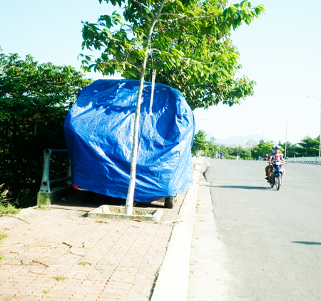 Vỉa hè đường 2-4, đoạn tiếp giáp với cầu Dinh 2, thị xã Ninh Hòa được xây dựng rộng đẹp dành cho người đi bộ. Thế nhưng, hàng ngày, luôn bắt gặp xe ô tô khách phủ bạt tùy tiện làm bãi đậu, bịt kín lối đi (ảnh). Mong chính quyền địa phương và ngành chức năng kiểm tra, xử lý.