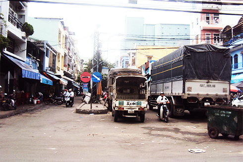 Trên đường Phạm Hồng Thái giáp với đường Lý Quốc Sư, TP. Nha Trang hàng ngày luôn có các loại xe tải lớn nhỏ tùy tiện làm bãi đậu, chiếm hết bên phần đường cho phép lưu thông (ảnh), khiến người điều khiển phương tiện qua lại gặp khó khăn, nguy cơ tiềm ẩn tai nạn giao thông cao.