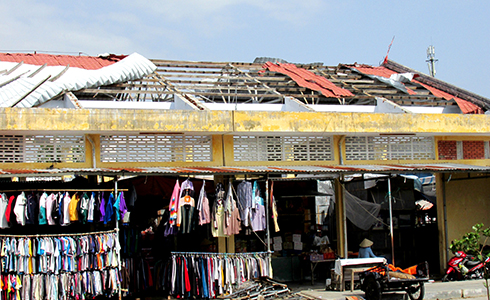 Sau cơn bão số 12 năm 2017, chợ Hòn Rớ, xã Phước Đồng, TP. Nha Trang bị tốc mái với diện tích rộng, nhưng đến nay vẫn chưa được lợp lại...