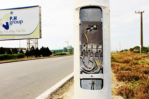 Hiện nay, trên Đại lộ Nguyễn Tất Thành, huyện Cam Lâm, đoạn từ vòng xoay đường Đinh Tiên Hoàng đến giáp giới với phường Cam Nghĩa, TP. Cam Ranh có hơn chục hộp điện dưới chân trụ đèn chiếu sáng bị mất nắp, có đoạn 4 nắp hộp điện liền nhau bị mất, để lộ ra cầu chì, đầu nối dây (ảnh), rất dễ xảy ra chập cháy khi trời mưa gió. Rất mong ngành chức năng kiểm tra, khắc phục để đảm bảo an toàn về điện.