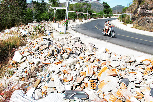 Thời gian gần đây, trên lề đường vòng Núi Chụt, phường Vĩnh Trường, TP. Nha Trang tràn ngập rác thải, xà bần do người dân thiếu ý thức đổ ra, trải dài hàng trăm mét, gây ô nhiễm môi trường và làm xấu cảnh quan nơi đây (ảnh).