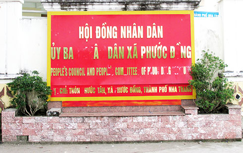 Hiện nay, bảng hiệu HĐND, UBND xã Phước Đồng, TP. Nha Trang bên cổng ra vào trụ sở UBND bị mất khá nhiều chữ, trông không đẹp trong mắt người dân qua lại và đến cơ quan làm việc (ảnh).