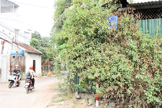 Hiện nay, tại khúc cua đường Châu Văn Liêm - Nguyễn Thị Định, phường Phước Long, TP. Nha Trang, hai biển báo tên đường bị bụi cây bao phủ hoàn toàn