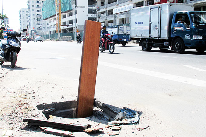 Hiện nay, trên đường Tố Hữu, gần nơi giao với đường A3, phường Phước Hải. TP. Nha Trang có hố ga bị sập nắp đậy, lộ ra hố sâu rất nguy hiểm. Đề phòng tai nạn cho người và các phương tiện tham gia giao thông, người dân phải dùng thanh gỗ cắm xuống hố để cảnh báo (ảnh). Rất mong cơ quan chức năng kiểm tra, khắc phục để đảm bảo an toàn và mỹ quan đường phố.