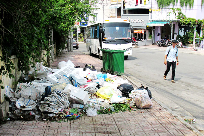Trên đường Nguyễn Đình Chiểu, đoạn trước Trường Đại học Tôn Đức Thắng, TP. Nha Trang, người dân thường xuyên xả rác bừa bãi trên vỉa hè, bốc mùi hôi thối, gây ô nhiễm môi trường và ảnh hưởng mỹ quan đường phố; người đi bộ khi qua đây phải đi xuống lòng đường nên không bảo đảm an toàn giao thông.