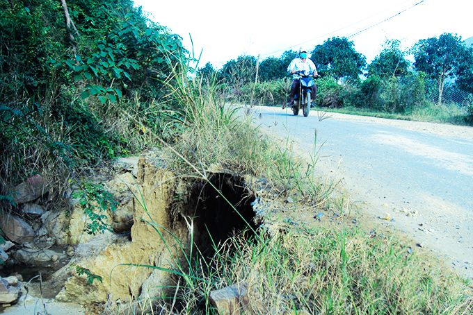 Nơi hành lang Tỉnh lộ 3, đoạn qua huyện Cam Lâm bị lở lói, sụp bể, khoét sâu vào mặt đường gần 1m, lộ ra hố sâu, kéo dài cả chục mét (ảnh), có nguy cơ tiềm ẩn xảy ra tai nạn cho người tham gia giao thông. Đề nghị cơ quan chức năng kiểm tra, khắc phục để bảo đảm an toàn cho người dân.