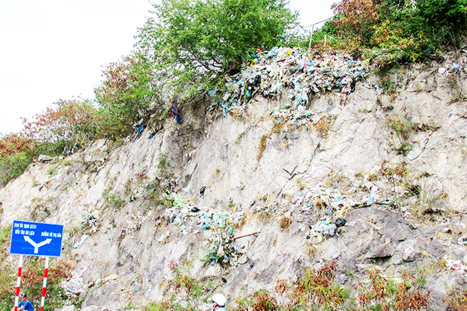 Trên đường vòng núi Chụt, đoạn sát ngã ba đường vòng núi Chụt - đường vào Khu tái định cư S1 và bến tàu du lịch, phường Vĩnh Trường, thành phố Nha Trang có một số hộ dân sống trên núi xả rác bừa bãi ra sườn núi, rác rơi xuống đường và bay tứ tung gây mất vệ sinh, ảnh hưởng xấu đến cảnh quan môi trường.