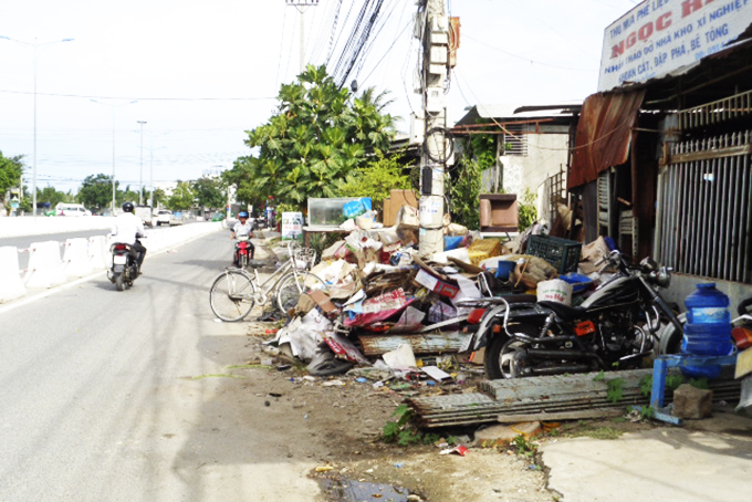 Trên Tỉnh lộ 3, đoạn giáp Đại lộ Nguyễn Tất Thành (xã Phước Đồng, thành phố Nha Trang), có hộ kinh doanh, buôn bán phế liệu để phế liệu tràn lan, chiếm hành lang, lòng đường, gây mất an toàn giao thông.