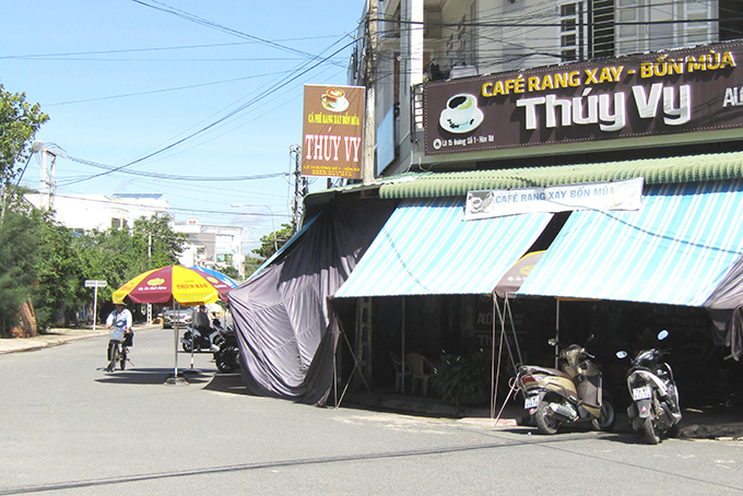 Trên đường Tôn Đức Thắng, đoạn tiếp giáp với đường Hàm Tử, Hòn Rớ, xã Phước Đồng, thành phố Nha Trang có một số hộ kinh doanh vô tư căng bạt, dựng ô dù, chiếm dụng lòng, lề đường để bán cà phê, giải khát, trải dài hàng chục mét, trông nhếch nhác; gây cản trở, tiềm ẩn nguy cơ mất an toàn cho người và phương tiện qua lại.